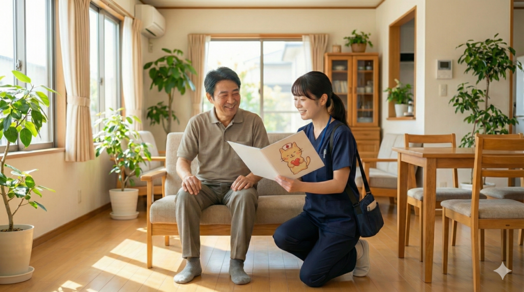 看護師が日々のバイタルチェックを通して“無理しすぎないペース”を一緒に見つけていきました。