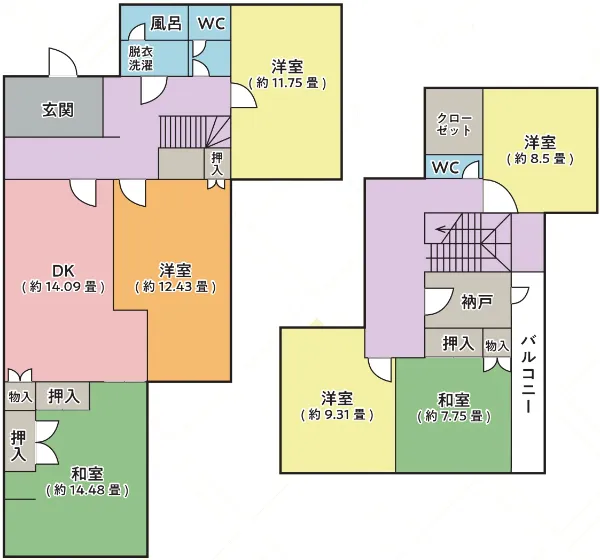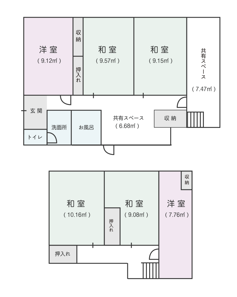 - 共有部:広いリビングとダイニング、浴室・トイレは男女別