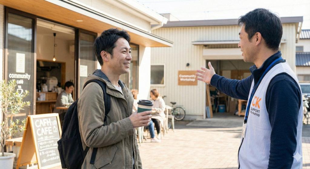 - 生活の乱れ → 支援員が食事・睡眠・清掃・買い物などをサポートし、リズムを整える