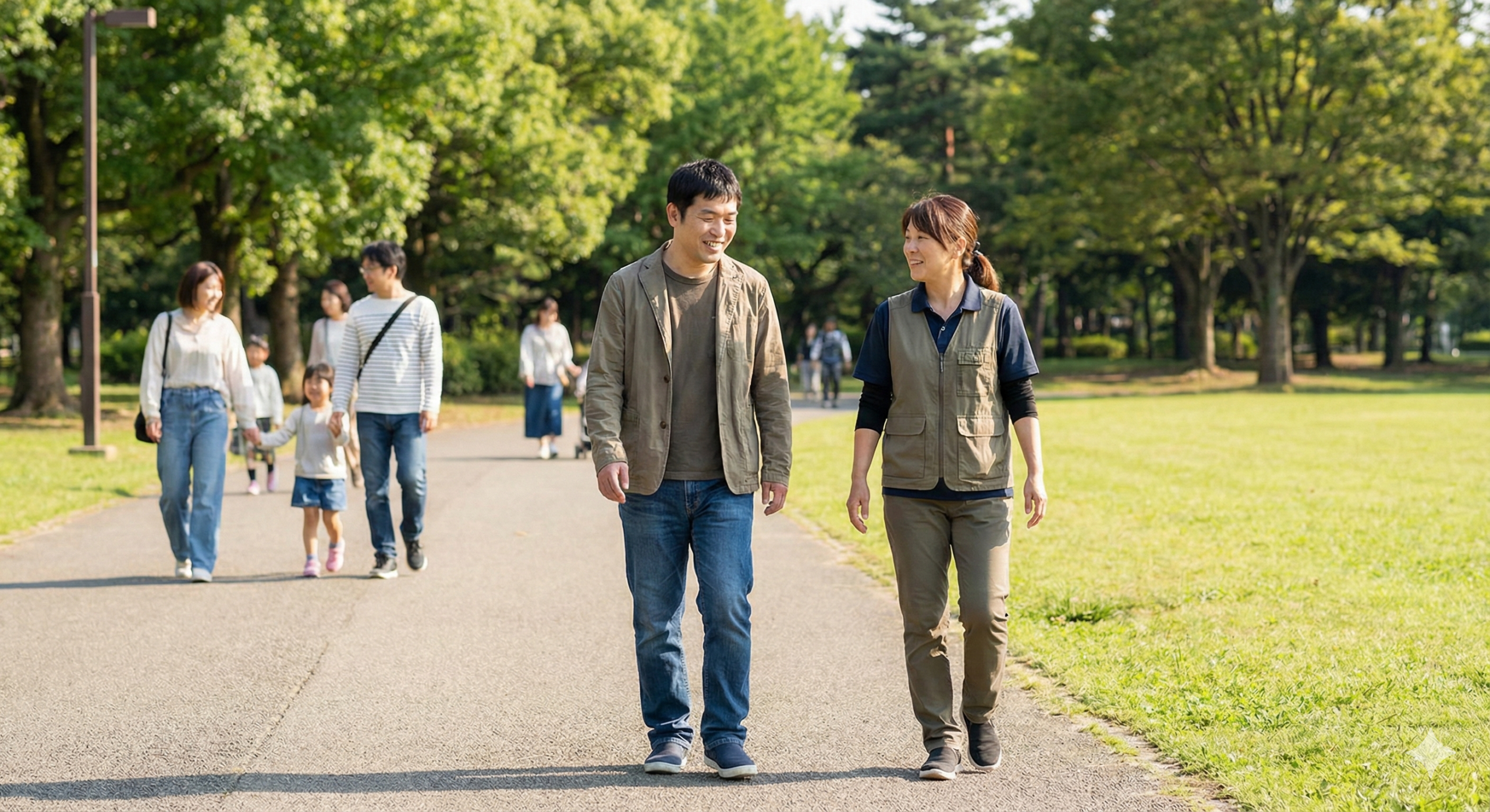 引きこもり気味だった方に対し、支援員が短時間の散歩から同行をスタート。