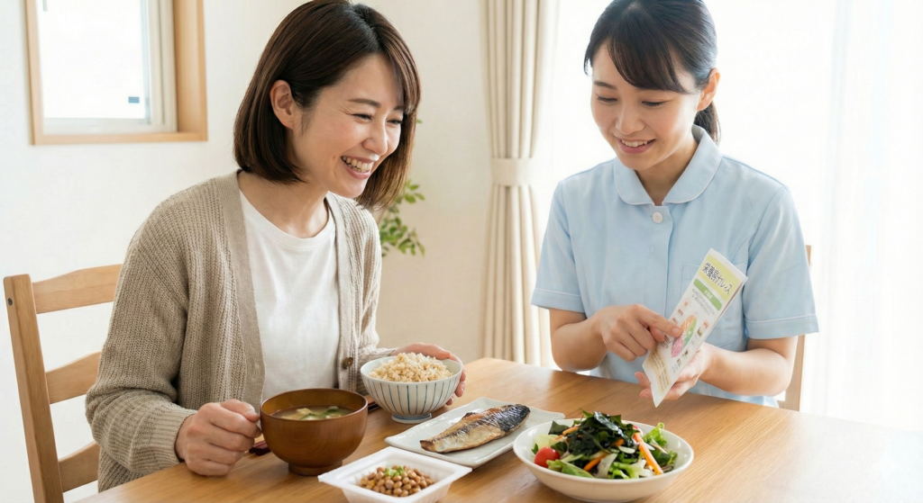 看護師が1日の流れを一緒に見直し、服薬時間を生活リズムに合わせて再設計。